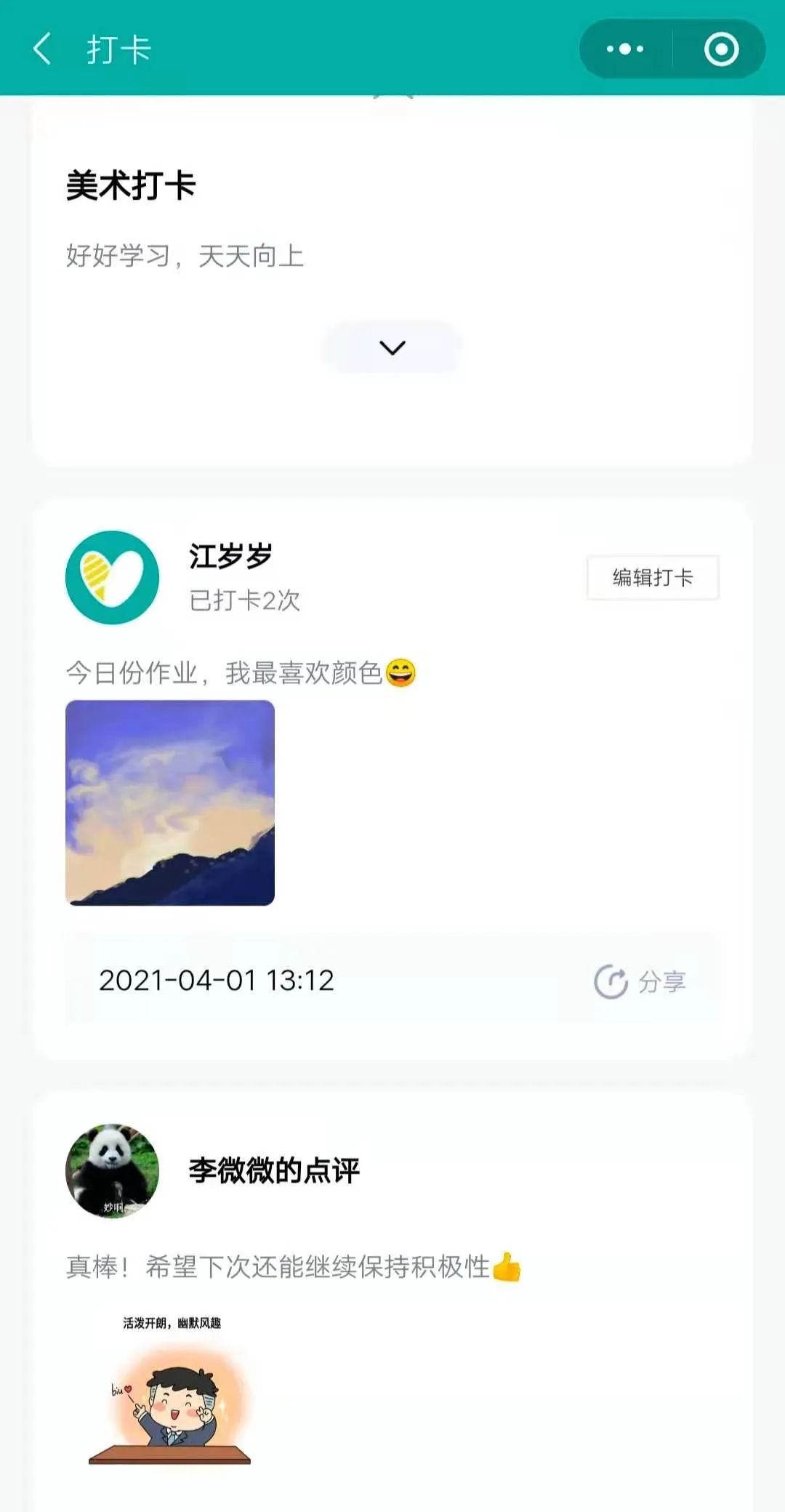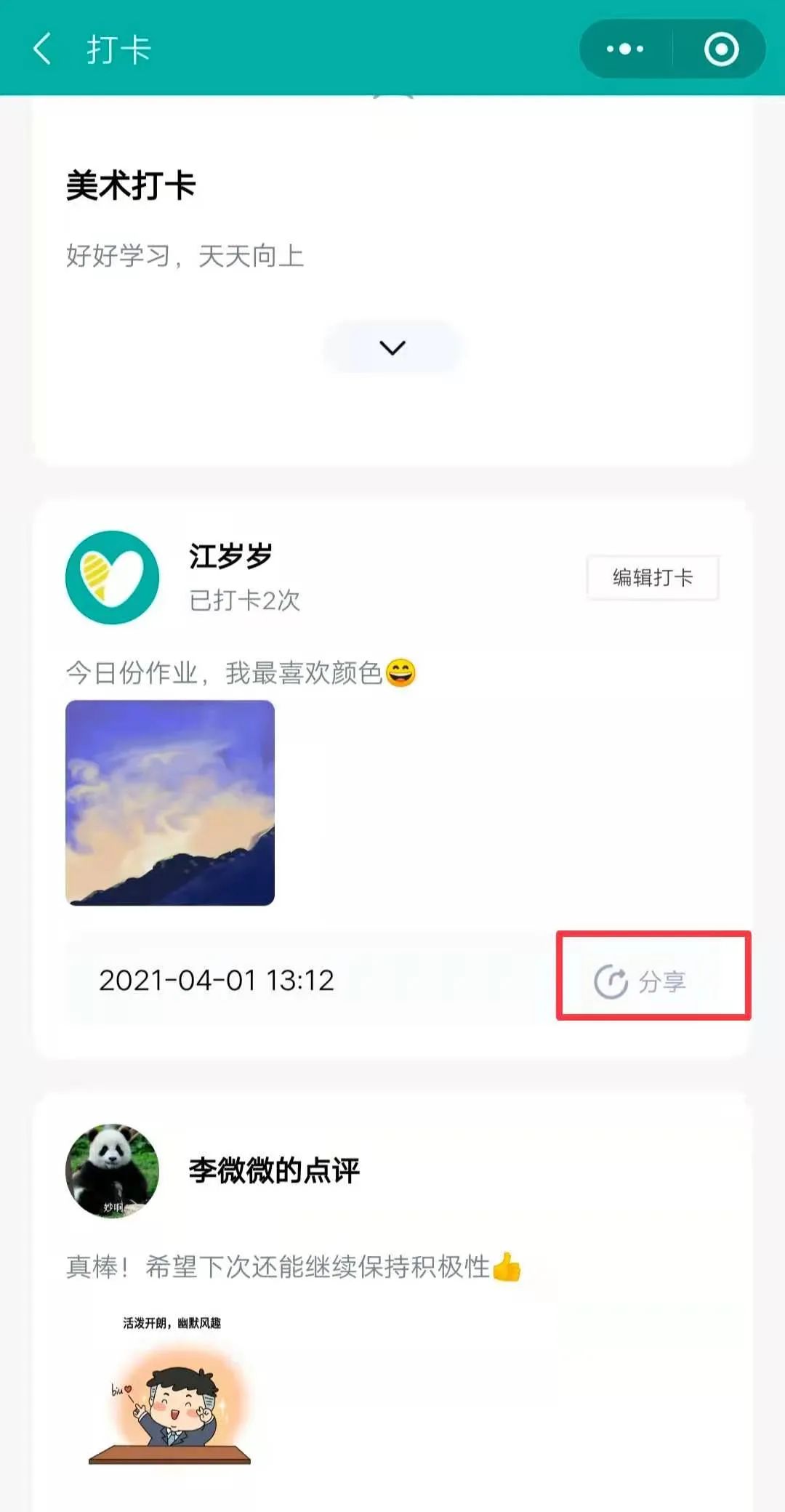 有效的表揚會鼓勵孩子打卡。看見孩子得到老師的表揚,家長也愿意將打卡活動分享到朋友圈。