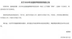 今日,教育部發(fā)布了關(guān)于2020年全國(guó)高考時(shí)間安排的公告,經(jīng)黨中央、國(guó)務(wù)院同意, 2020年全國(guó)普通高等學(xué)校招生統(tǒng)一考試延...